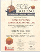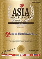 | ASIA EXCELLENCE AWARD 2014 | MARITIME AWARD (SHSE) 2014 | MARITIME AWARD (SHSM) 2014 | 2012 2013 CIRCLE OF EXCELLENCE SAN HUP SENG ENGG PTE LTD |